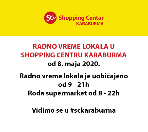 Od 8.5.2020. lokali Shopping Centra Karaburma rade uobičajenim radnim vremenom.